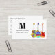 Améliorez votre présence professionnelle avec ce carte de visite captivant conçu pour les professeurs de guitare et les musiciens. Doté d'oeuvres originales de Catherine Sweetman, le design dynamique présente une collection de guitares acoustiques, semi-acoustiques et électriques psychédéliques aux couleurs vives. Ce modèle facile à utiliser est entièrement personnalisable avec votre monogramme personnalisé, les coordonnées, le code QR du site Web, et les icônes de médias sociaux, ce qui fait de la mise en réseau une brise. Faites une impression mémorable avec cette carte de visite cool et moderne.