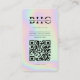 Voici un Hairstyliste moderne Hair Beauty Salon Instagram QR holographic Carte de visite! présente du texte et des photos personnalisés, avec un code QR pour un accès facile.