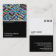 Un modèle de carte de visite avec une moitié inférieure noire bordée de blanc. Le design avant comprend une photo ou une oeuvre d'art dans la partie supérieure. Le même thème est répété à l'arrière sans l'image, permettant la place pour d'autres détails et une personnalisation plus poussée. Les trois motifs carré utilisés comme élément décoratif sur le dos proviennent d'une des polices d'image utiles de Zazzle et peuvent être utilisés comme élément décoratif ou remplacés par votre propre logo ou décoration.