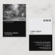 Un modèle de carte de visite avec une moitié inférieure noire bordée de blanc. Le design avant comprend une photo ou une oeuvre d'art dans la partie supérieure. Le même thème est répété à l'arrière sans l'image, permettant la place pour d'autres détails et une personnalisation plus poussée. Les trois motifs carré utilisés comme élément décoratif sur le dos proviennent d'une des polices d'image utiles de Zazzle et peuvent être utilisés comme élément décoratif ou remplacés par votre propre logo ou décoration.