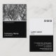 Un modèle de carte de visite avec une moitié inférieure noire bordée de blanc. Le design avant comprend une photo ou une oeuvre d'art dans la partie supérieure. Le même thème est répété à l'arrière sans l'image, permettant la place pour d'autres détails et une personnalisation plus poussée. Les trois motifs carré utilisés comme élément décoratif sur le dos proviennent d'une des polices d'image utiles de Zazzle et peuvent être utilisés comme élément décoratif ou remplacés par votre propre logo ou décoration.