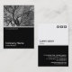 Un modèle de carte de visite avec une moitié inférieure noire bordée de blanc. Le design avant comprend une photo ou une oeuvre d'art dans la partie supérieure. Le même thème est répété à l'arrière sans l'image, permettant la place pour d'autres détails et une personnalisation plus poussée. Les trois motifs carré utilisés comme élément décoratif sur le dos proviennent d'une des polices d'image utiles de Zazzle et peuvent être utilisés comme élément décoratif ou remplacés par votre propre logo ou décoration.