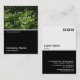 Un modèle de carte de visite avec une moitié inférieure noire bordée de blanc. Le design avant comprend une photo ou une oeuvre d'art dans la partie supérieure. Le même thème est répété à l'arrière sans l'image, permettant la place pour d'autres détails et une personnalisation plus poussée. Les trois motifs carré utilisés comme élément décoratif sur le dos proviennent d'une des polices d'image utiles de Zazzle et peuvent être utilisés comme élément décoratif ou remplacés par votre propre logo ou décoration.