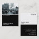 Un modèle de carte de visite avec une moitié inférieure noire bordée de blanc. Le design avant comprend une photo ou une oeuvre d'art dans la partie supérieure. Le même thème est répété à l'arrière sans l'image, permettant la place pour d'autres détails et une personnalisation plus poussée. Les trois motifs carré utilisés comme élément décoratif sur le dos proviennent d'une des polices d'image utiles de Zazzle et peuvent être utilisés comme élément décoratif ou remplacés par votre propre logo ou décoration.