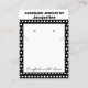 Handmade Jewelry by Name typography in black against white background. Edit font size if including a last name, or business name on front. Black background with white polka dots. Crafted with love written in black script (keep or insert short tagline, or delete to leave area blank). Two Small Circles against white and black framed background. NOTE: Circles and Lines on each side are not pre-cut, you will need to use a Small hole punch, and scissors or box knife cutter type to make clean cut holes and Small slits, to then place your Earring Studs and Necklace in. Backside has small red heart. Insert telephone number, email address, website, social media handle, as needed. Insert Your Business QR Code for customers to Shop 24/7, or delete as needed. Original Design by TamiraZDesigns.