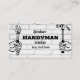 Design élégant et lisible Handyman Services Carte de visite. Pour plus de matériel marketing de mise en correspondance, de conception personnalisée ou de demande de logo, veuillez me contacter à manunamankaya@gmail.com et je répondrai dans les 24 heures. Pour l'expédition, cardstock demande et prix contactez Zazzle directement.