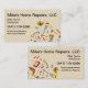 Professional handyman services design carte de visite avec l'image d'un handyman et des outils matériels dans l'arrière - plan et disposition simple conçu pour être customisé en ligne. Créé pour le bricoleur, remodelage, ou réparations domiciliaires. La conception est imprimée sur les deux côtés et vous pouvez utiliser le dos pour mettre votre texte dans une autre langue seconde si vous le souhaitez.