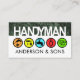 Just below this is an array of handyman tools icon that can represent some of the work you offer e.g. the hand drill-measuring tape can represent home repairs-renovation, the brushes for painting-interior design. Their usage is left to your own interpretation. Near the base lies your prestigious name or business name.