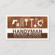 Design features an upper wood layer that has an array of handyman tools. The tools can represent some of the services that you offer. Just below this in a white layer, is the business name "HANDYMAN" (in dark brown) which you can change. At the lower dark brown layer stand your prestigious name and contact details in white that corresponds with the upper white layer.