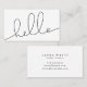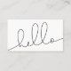 carte de visite noir et blanc minimaliste avec un texte sur le devant qui dit "bonjour !" en décontracté script écrit à la main. Design professionnel et simple.
