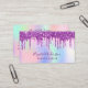 Un arrière - plan holographique tendance en rose, violet, vert menthe. Décoré avec des gouttes d'or rose, rose et violet. Personnalisez et ajoutez votre nom, titre, numéro de téléphone, adresse postale et adresse de site Web. Lettres violettes. Sans gouttes sur le dos.