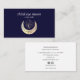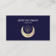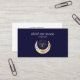 Cartes de visite élégants pour studio de yoga, studios de massage, massothérapie, professeur de méditation, conseiller en santé naturelle, spas ou professionnels du bien-être présentent une illustration holographique en or d'un troisième oeil au-dessus d'une lune croissant sur un arrière - plan bleu marine classique et intemporel. Customisez l'avant avec deux lignes de texte personnalisé et ajoutez vos coordonnées complètes à l'arrière en utilisant le modèle. Inclure les icônes sociales. Aussi disponible en format carré Un design chic pour tout studio de yoga, industrie du bien-être ou profession holistique liée à la santé Autres couleurs disponibles Pour apparier matériel ou demande personnalisée veuillez écrire à citronelladesign@gmail.com