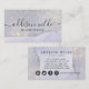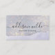 Holographique Parties scintillant violet Carte de visite Glam Iridescente Luxury. Ce design est doté d'une signature classique de script de calligraphie jeu de police contre un bel arrière - plan moderne irisé lilas violet brillant. Parfait pour un salon de beauté, coiffeur, maquilleur, technicien en ongles, technicien en fouille ou cosmétologue.
