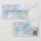"carte de visite arrière - plan holographique mignon et brillant pour les propriétaires de petites entreprises et les grandes entreprises. Le design comprend un arrière - plan moderne, script, typographie, polices tendance et simple mais efficace. Parfait pour un esthéticien ou un propriétaire de salon de beauté, un maquilleur, un costumier, un coiffeur, un coiffeur ou un cosmétologue." Ajoutez simplement votre logo, votre nom et vos détails commerciaux à cette carte lumineuse et moderne en cliquant sur le bouton "Personnaliser" ci-dessus. REMARQUE : Les détails holographiques sont simulés dans l'illustration. Il n'y aura aucun effet holographique réel de brillance lors de l'impression.