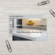 Modern home remodeling and construction business cards created with a graphic of a newly remodeled kitchen with marble island and your business name featured on the front.