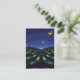 Cette carte de collection fantastique d'artiste abstrait comporte un paysage surréaliste de ciel dans les vagues du bleu au-dessus de la terre verte et noire atteignant de nouveau à l'infini, tout dans une lumière lumineuse. Trois colombes d'or semblent voler hors du vide infini.