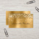 Parties scintillant dorée brillante à faux contre une image graphique en métal brossé à l'ombre dorée et satinée. Conception moderne de glamour pour sa petite entreprise. Les couleurs principales de ce design girly sont l'or, le jaune doré, le beige, le noir et blanc. Tous les éléments brillants et brillants de ce design carte de visite girly moderne sont des graphismes numériques.