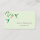 Business card featuring two beautiful turquoise hummingbirds on a light green background. The font style, font size and color can be changed by clicking on "Edit by using the Design Tool".