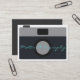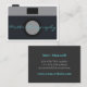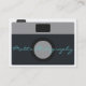 Un carte de visite avec une icône d'appareil-photo en tant que conception. Texte bleu et gris pour la personnalisation des détails. Un carte de visite simple, professionnel et moderne pour des photographes ou entreprises traitant l'équipement d'appareil-photo.