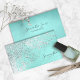 Cet élégant carte de visite est doté d'un arrière - plan abstrait en angle qui brille dans les tons d'argent scintillant sur turquoise. Ajoutez le nom, le titre ou le slogan à l'avant et les coordonnées à l'envers. Un choix chic et professionnel pour toute affaire de beauté, de mode ou de style. Montré ici en taille carte de visite standard en format horizontal. Recherchez ID775 pour voir d'autres tailles, options de couleur et professions avec ce motif arrière - plan glam.