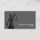 Faites une impression puissante avec cet élégant carte de visite du cabinet d'avocats, avec une illustration vectorielle de Lady Justice sur un arrière - plan gris élégant. Le recto met en évidence votre nom dans une police sans serif. L'envers dans un blanc propre offre de l'espace pour votre nom, titre, coordonnées et adresse web. Idéal pour les avocats, les avocats, les conseillers juridiques et les cabinets d'avocats, ce design communique fiabilité et prestige à première vue.