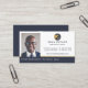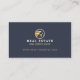 Design carte de visite immobilier moderne et professionnel avec un espace réservé photo intégré dans le design pour afficher votre propre portrait photo. Un design épuré et minimaliste avec le logo design de la maison marine et or que vous pouvez personnaliser avec votre nom d'entreprise ou retirer et remplacer par votre propre logo. Le nom et le titre sont affichés en évidence le long du fond d'une bande bleue marine. Des accents de faux or subtils sont incorporés dans le design pour ajouter un look professionnel élégant. Personnalisez avec vos coordonnées. Le verso comprend le logo de l'entreprise et des informations supplémentaires sur les contacts, telles que l'adresse du site Web. Vous pouvez modifier la couleur, la police, la couleur et la disposition de l'arrière - plan en fonction de vos préférences personnelles. Le logo contenu dans ce design sont des oeuvres originales de la mode.