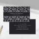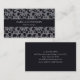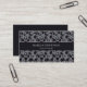 Un imprimé léopard gris foncé est sur le devant de cette carte de visite avec une bande noire au milieu où vous pouvez personnaliser la typographie blanche avec votre nom et les détails de votre entreprise. Le dos de la carte a un fond noir simple avec une typographie blanche pour que vous puissiez ajouter vos coordonnées.
