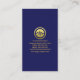 Au-dessus, dans une couverture bleue, les détails sont au centre avec le logo or en haut suivi par le nom d'entreprise, le slogan et les coordonnées.