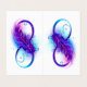 Infinity symbol with a beautiful feather painted in purple and blue bright colors on white background.