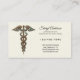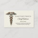 Carte de visite professionnel de soins médicaux pour personnes âgées ou âgées présentant un caduceus de style métallique sur un arrière - plan couleur crème avec une légère texture imprimée en pierre pour ajouter classe.