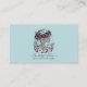 Un carte de visite infirmier illustré unique en bleu vert, ou aide sanitaire à domicile pour les soins aux personnes handicapées, ou aux adultes âgés. Une carte joyeuse, sereine et invitante pour un soignant compatissant. L'illustration vibrante contient la citation : "amour pour guérir".