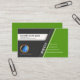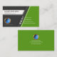 Le design présente un trapèze vert à la face droite avec une couche grise sous-jacente. Ce calque comporte les boutons d'icône de média qui se connectent à vos contacts professionnels. Au nord, dans une colonne de rectangle blanc, vous trouverez votre nom prestigieux et votre titre de travail. Près du milieu se trouvent le faux logo or et son nom d'entreprise.
