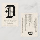 Carte de visite avec la lettre gothique ancienne D dans une reproduction d'une police véritable médiévale/Renaissance.