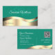 Montrez l'élégance et l'innovation avec ce modèle de carte de visite exquis. Le design se compose d'un décor doré brillant et ondulé aux lignes turquoises et claires, sur un arrière - plan turquoise clair et sobre. Customisez facilement ce carte de visite à votre marque, vos initiales et votre code qr. Tout ce que vous voyez, c'est un faux papier doré, mais un design d'impression de très bonne qualité. ♡ Je vous souhaite beaucoup de plaisir avec cet article et bonne chance pour votre entreprise. ♡ par VOTRE FAVORITE - designs : -) Fournitures d'affaires modernes et professionnelles. ♡ www.zazzle.com/store/your_favorite ♡ www.zazzle.com/store/favorite_markeplies ♡
