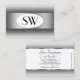 Carte De Visite Initiales gris et blanc Ombre Argent Oval Frame