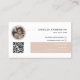 Initiales modernes Nom Beige Round Photo QR Code Carte de visite