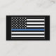 Cette conception comporte un thème de drapeau de la police avec une mince bande bleue. Customisez avec le nom, le poste et les coordonnées de l'agent d'application de la loi, du shérif, du capitaine, du chef ou de tout employé travaillant au service de police.