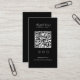 Carte de visite noir et blanc tendance et accrocheur avec un code QR scannable. Utilisez-le pour vous connecter facilement avec vos clients et clients sur les médias sociaux. Connectez-vous avec nous sur Instagram, Facebook et les cartes de visite de YouTube avec un code QR. Customisez avec votre logo, URL et nom d'utilisateur des médias sociaux, et texte personnalisé. Utilisez les icônes supplémentaires fournies sur le tableau de bord pour remplacer ou ajouter des icônes qui répondent aux besoins de votre entreprise. Qu'attendez-vous ? Commandez maintenant et facilitez plus que jamais la connexion avec les clients.