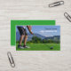 Photo d'un homme environ à piquer sur un terrain de golf. Modèle de carte de visite pour des entreprises relatives de golf.