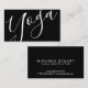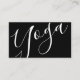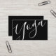 Professional Modern Black and White Yoga Instructor Carte de visite avec le mot "yoga" dans le style de police de calligraphie moderne à l'avant et les détails dans le style de police sans serif moderne à l'arrière.