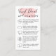 Faites sensation avec cette carte d'application de décalcomanie vinyle moderne et minimaliste, dotée d'un design de pinceau rose qui attire à coup sûr l'attention. Le recto de la carte comprend un espace pour votre propre logo et des informations personnalisables, avec une police manuscrite qui ajoute une touche personnelle. Au verso de la carte, vous trouverez des instructions détaillées pour l'application de décalcomanies vinyles, ainsi que des icônes utiles pour vous guider tout au long du processus. Que vous soyez un propriétaire d'entreprise, un artisan ou toute autre personne à la recherche d'un design de carte unique et pratique, cette carte d'instructions d'application de décalcomanie vinyle rose moderne est parfaite pour vous.