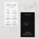 Assurez-vous que vos clients savent comment prendre soin de leur peau avec un carte de visite de post-soin facial personnalisé. Cette carte élégante de soins du visage de beauté comprend des icônes de soins pour chaque étape et une police de style calligraphie avec design arrière - plan noir et blanc. Cette carte de visite esthéticienne branchée est l'ajout parfait à votre design de papeterie de salon.