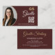 Carte De Visite Insurance Agent Burgundy Gold Photo QR Code