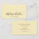 Carte De Visite Jaune en pastel de calligraphie élégante