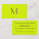 Carte de visite en jaune fluorescent (#DFFF00) couleur solide arrière - plan et un monogramme audacieux .Personnalisez les deux côtés maintenant. Design moderne et tendance par Alma Wad. Il est livré 100 dans un pack.