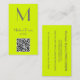 Carte De Visite jaune fluorescent - monogramme gras - code QR