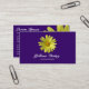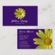 Un carte de visite avec un motif photo de marguerite jaune. Nom commercial etc sur le devant avec d'autres détails sur le verso dans une variante du style avant.