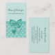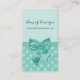 Un carte de visite de boutique en dentelle verte à la menthe avec un ruban féminin attaché dans un joli arc. Personnalisez ce design chic et élégant en ajoutant votre nom et votre site Web. Impression plane, pas arc