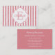 Carte De Visite Joli rose peint rayures Monogramme et nom