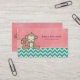 Un modèle de carte de visite avec une jolie illustration d'un singe brun douillet assis. Elle a des joues rougissantes roses pour plus de gentillesse kawaii. L'arrière - plan est une combinaison d'un motif de chevron vert turquoise clair et crème, et d'une texture abîmée rose. Design amusant et fantaisiste. Une fine bordure verte de chaux sépare les 2. Un design sympa pour les entreprises et les professions avec un thème pour enfants ou des designs faits main, ou ceux avec un thème singe.